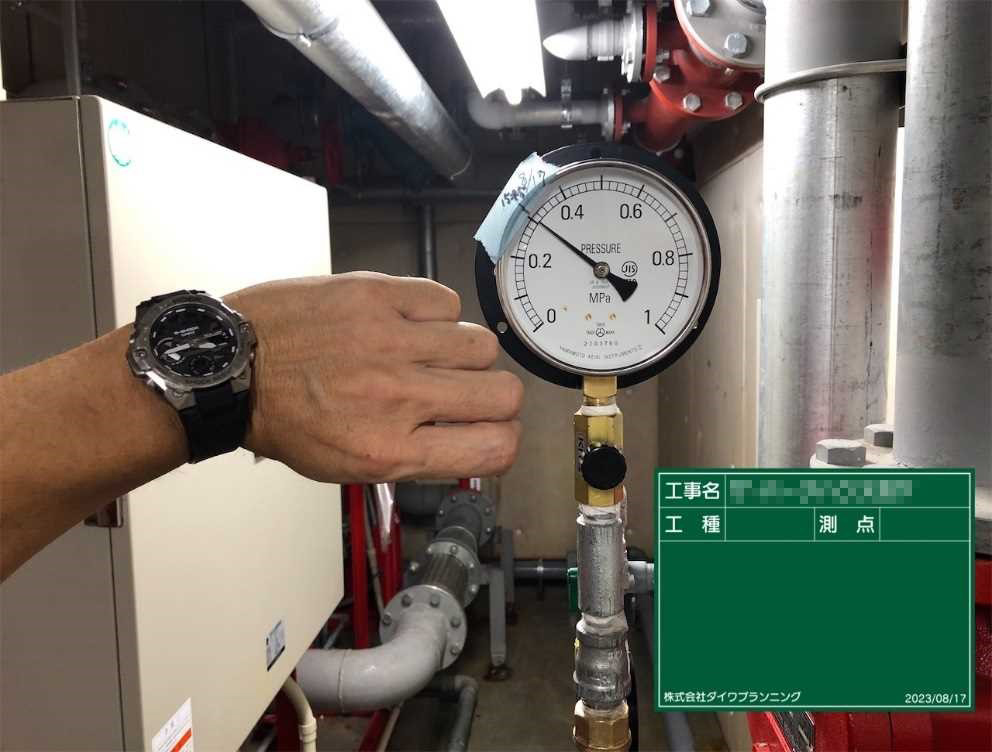 区間ごとに配管を密閉し、一定圧力をかけて圧力低下がないかを確認します。これにより微小な漏れも見逃しません。